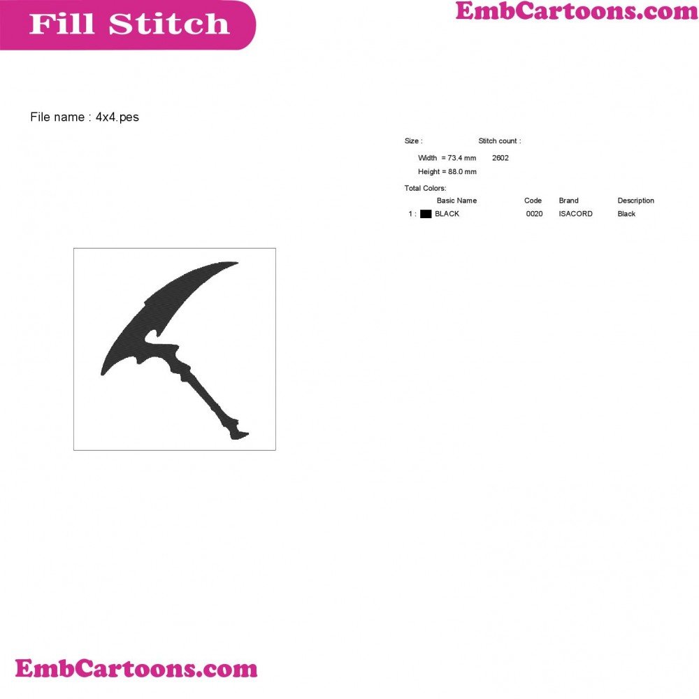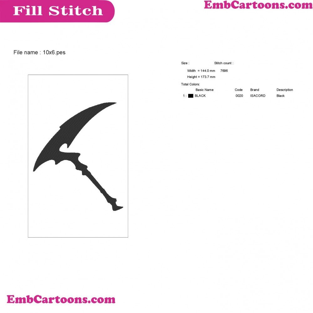 - Product Code: Fortnight Weapon Fortnight Silhouette Embroidery Design 46
