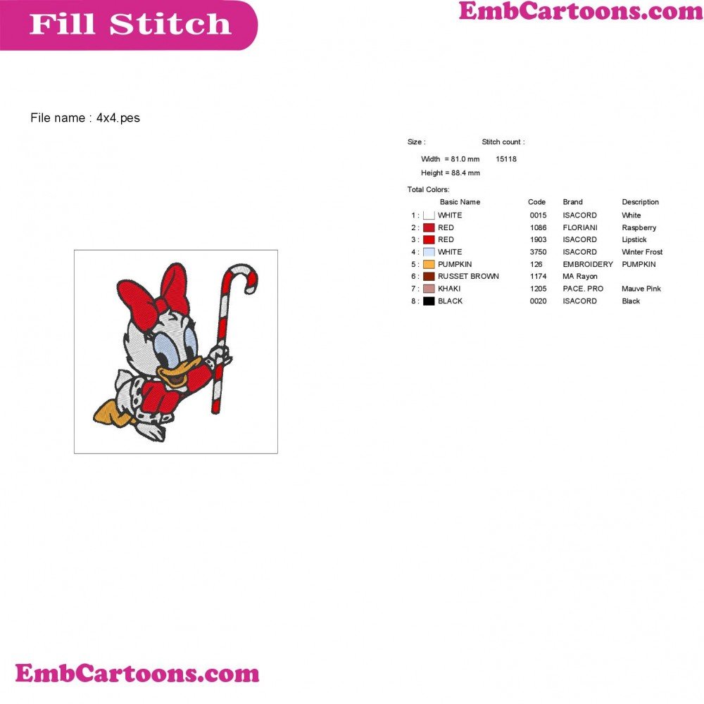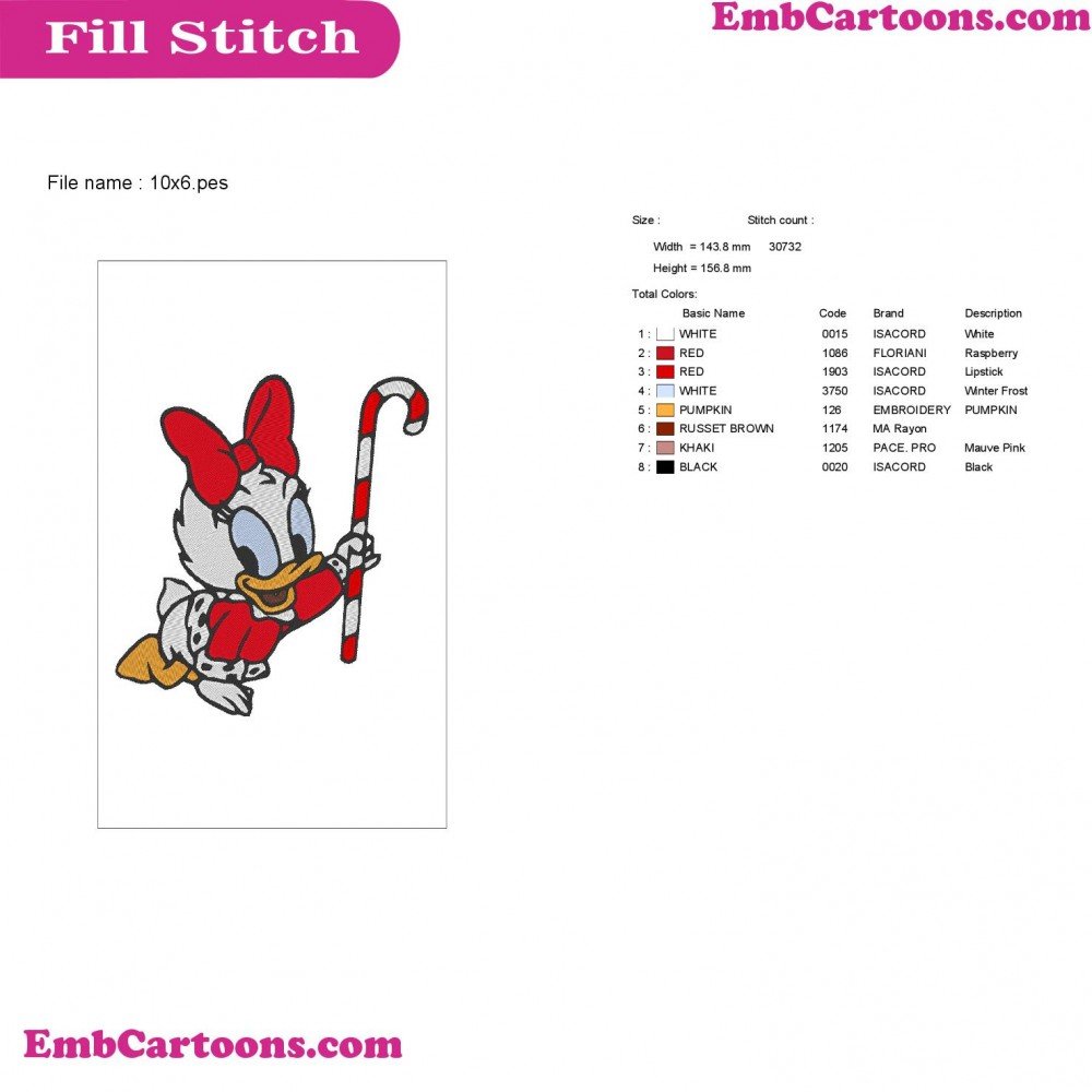 - Product Code: Baby Daisy Candy Cane Mickey Mouse Christmas Embroidery Design