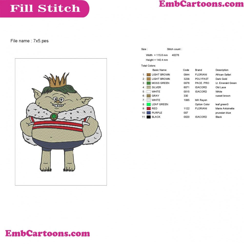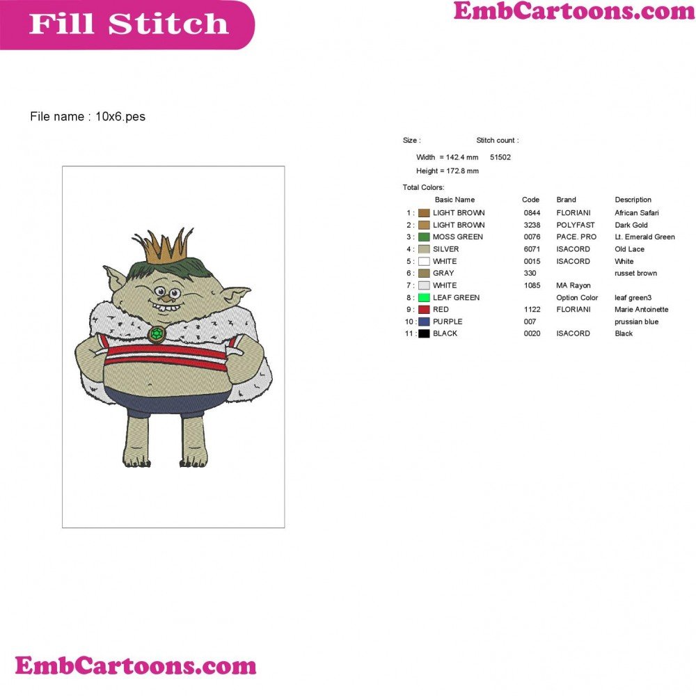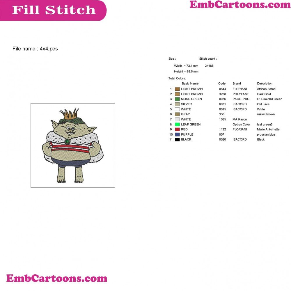 - Product Code: Prince Gristle Trolls Embroidery Design