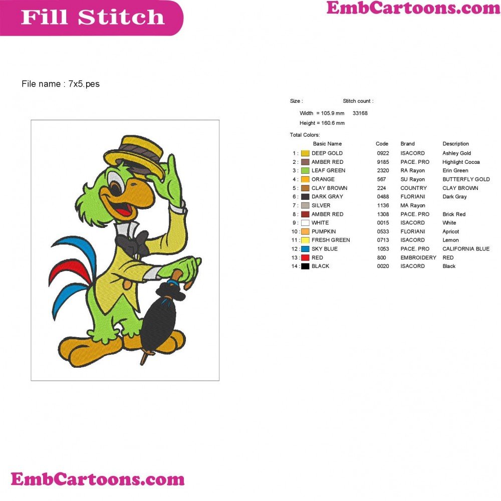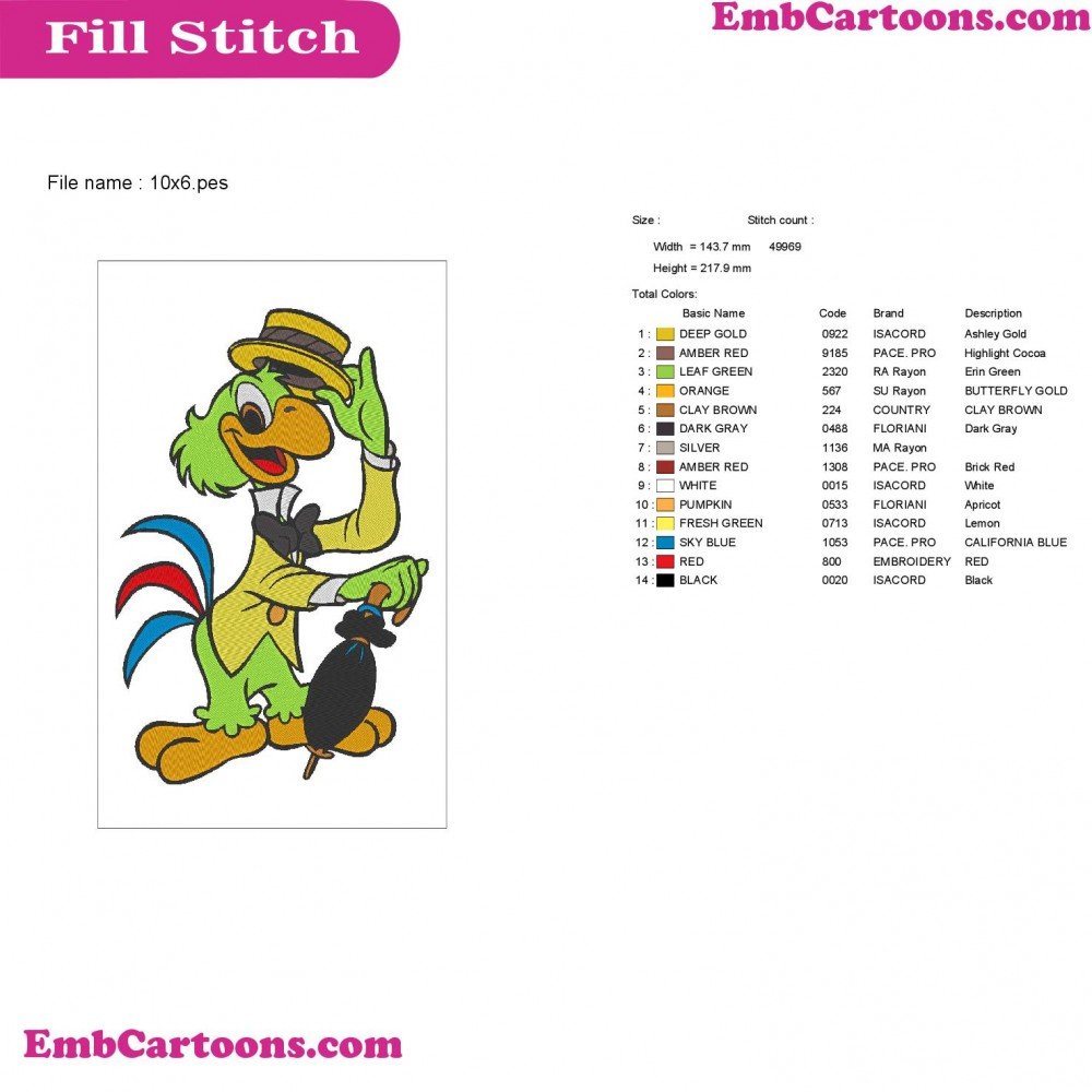 - Product Code: Jose Carioca Raises Hat 2 Saludos Amigos Embroidery Design