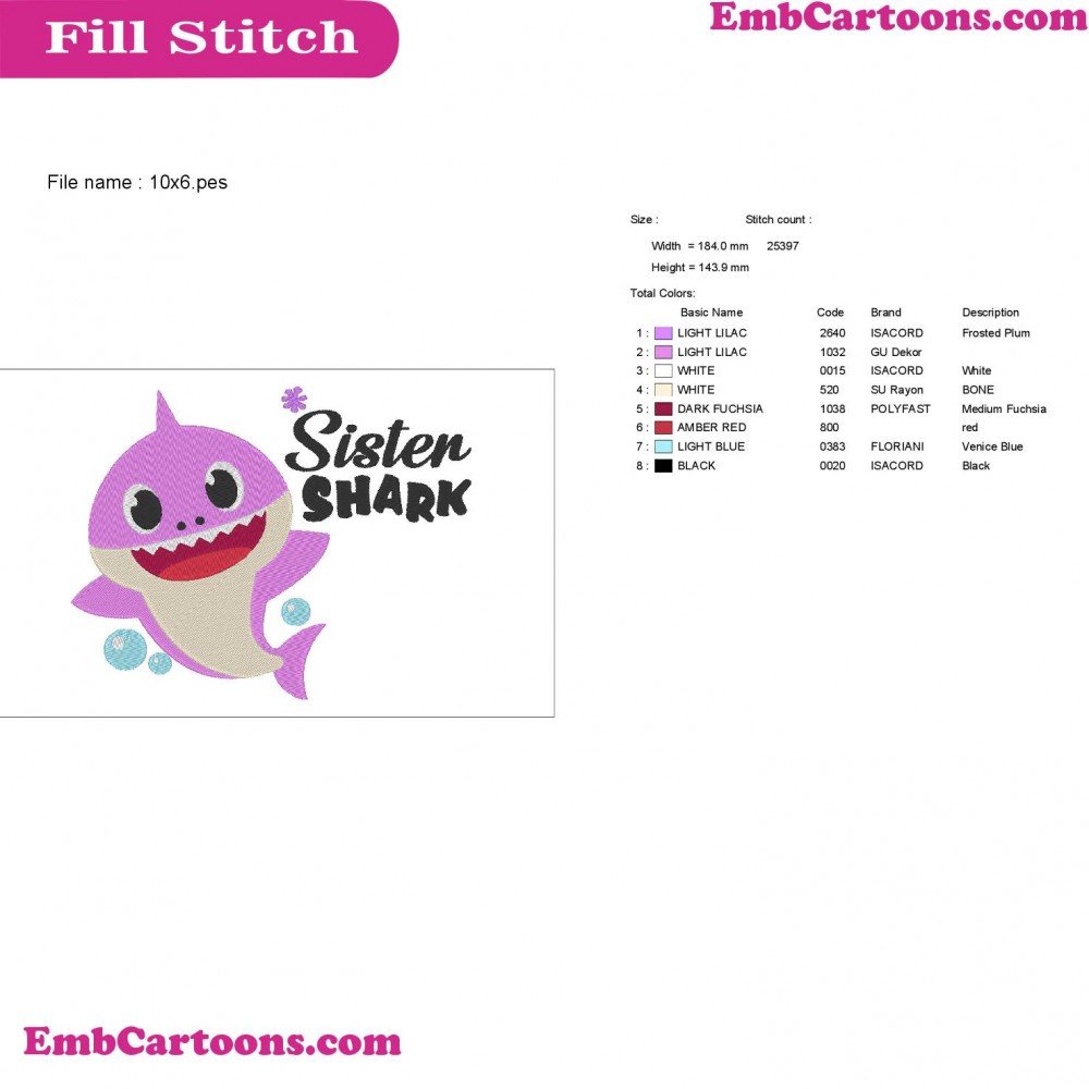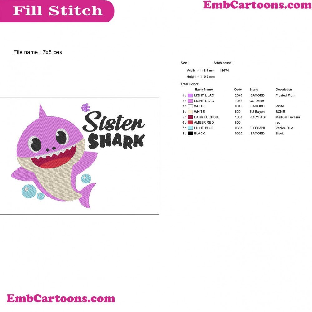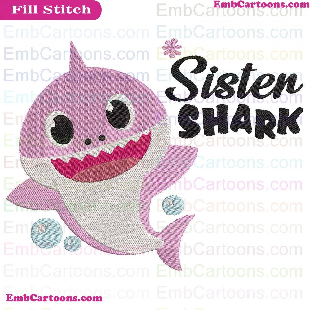 - Product Code: Sister Baby Shark With Bubbles Shark Family Embroidery Design